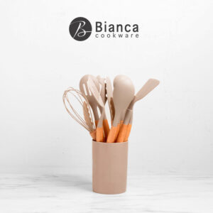 stainless steel with cover (16) cm – rectangle tray (30) cm- silicone cooking utensils set of 12 pcs with wood handles